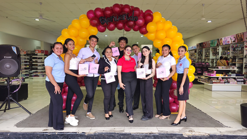 Candidatas y candidatos del certamen Rey y Reina UCYT 2025 realizaron una exitosa visita a Variedades Alba y Variedades Margarita, patrocinadores oficiales del evento.